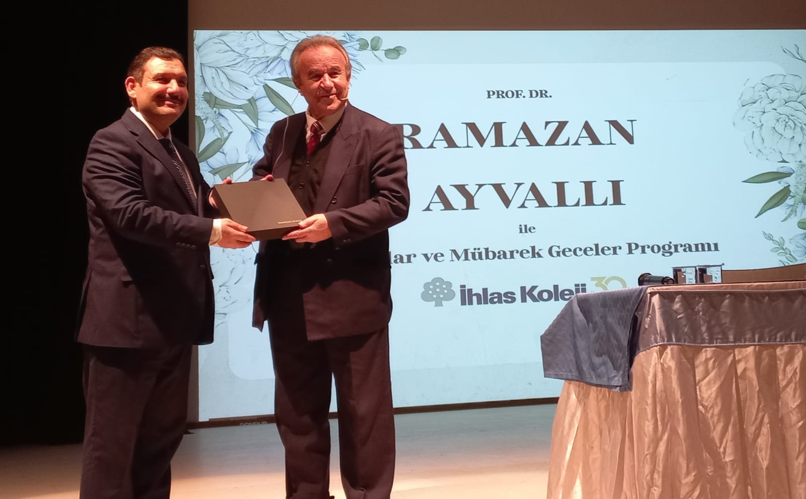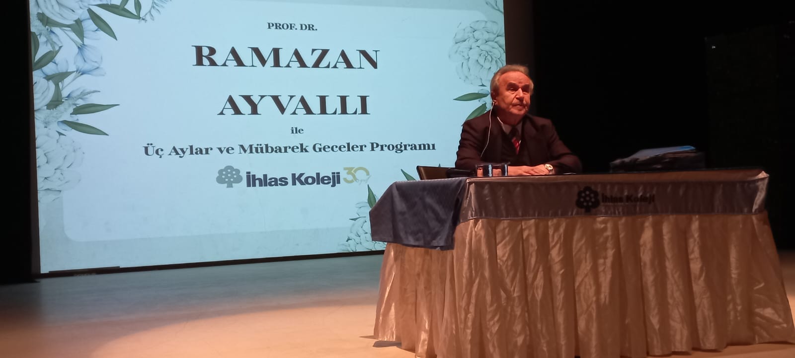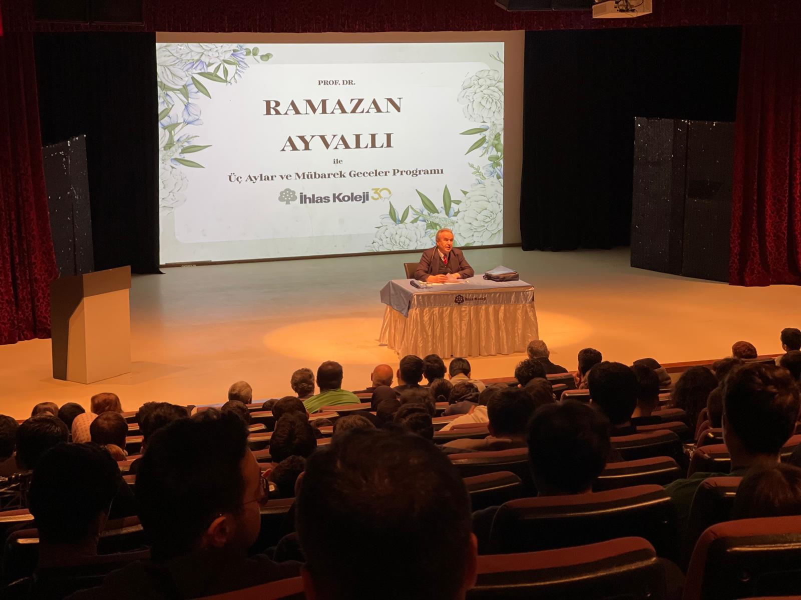 Vakıf Başkanımız Prof. Dr. Ramazan Ayvallı, konferansında, Mübarek üç ayların manevi yönlerini, içinde bulunan mübarek geceleri ve bu gecelerin önemini ele aldı. Hadis-i Şerifler ve islam alimlerinin sözlerinden bu günlerin feyz ve bereketi üzerinde durdu. Program sonrasında katılımcılara hocamızın Pelgamber Efendimizin Hayatı isimli kitabı ve bazı hediyeler dağıtıldı. Program sonunda Kolej yönetici ve öğretmenleri tarafından çiçek ve plaket verilen Prof. Dr. Ramazan Ayvallı öğrencilerle uzun sohbetler etti ve kitaplarını imzaladı.